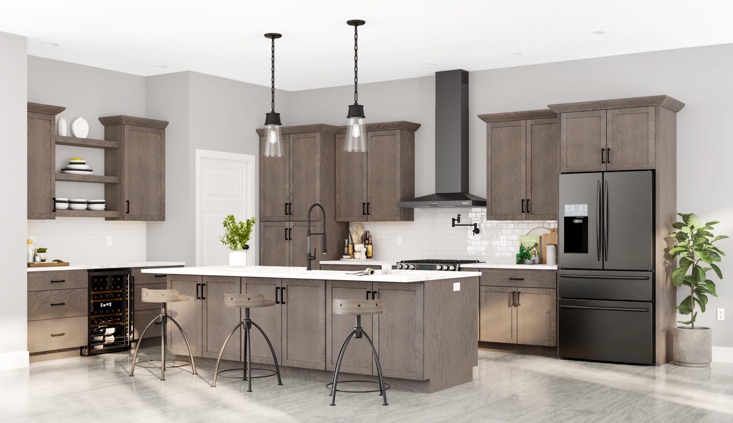 The Kingston Door Style blends classic craftsmanship with clean, versatile lines, making it a timeless choice for kitchens, baths, and beyond. Optional 5-piece drawer fronts offer an elevated look compared to the standard slab front, allowing for a more cohesive and refined cabinet design.
