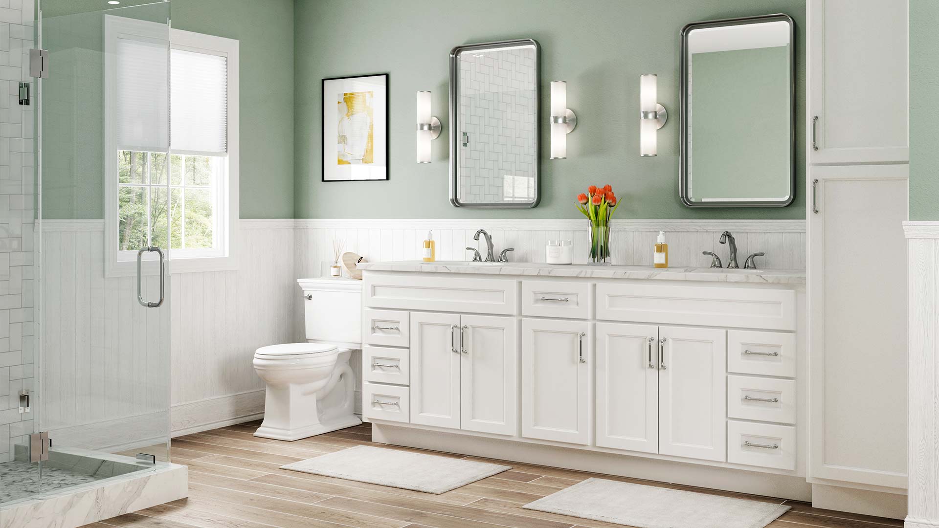 The Youngstown Door Style offers a clean, classic look that suits both traditional and transitional spaces. Optional 5-piece drawer fronts provide an upgraded, cohesive design over the standard slab style.