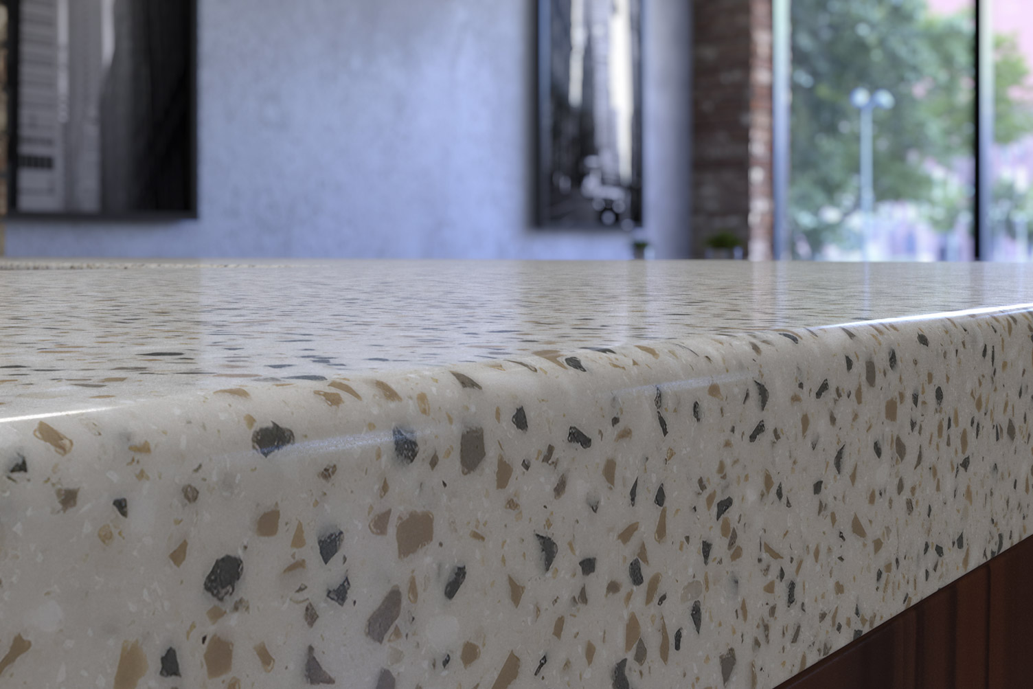 Peppered Terrazzo – Contemporary Energy in Corian® Solid Surface