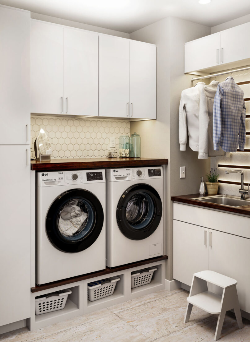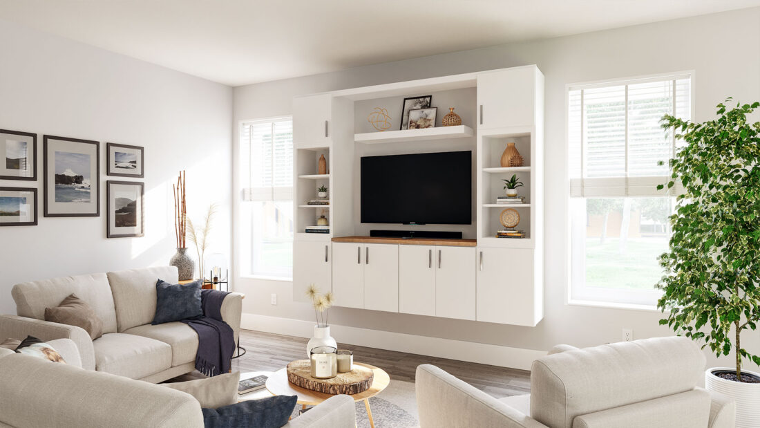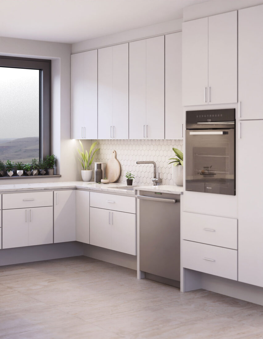 Constructed with 5/8″ particleboard and finished with a maple veneer, the Durham door is built for consistency and durability. Painted options are crafted from a composite board, ensuring a smooth, uniform finish. Stained doors feature maple veneer edge banding, delivering a cohesive, finished look from every angle.