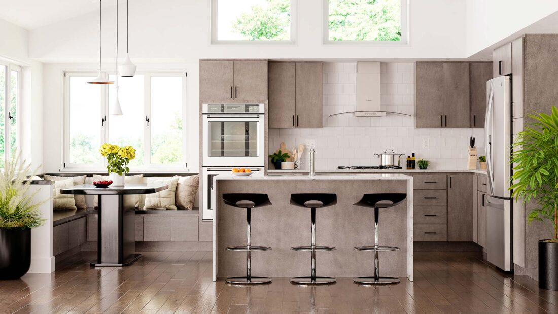The Durham Door Style from Kountry Wood Cabinets offers a streamlined slab design that brings a clean, modern look to any space. Its simplicity makes it a versatile option for a wide range of projects, from contemporary kitchens to more transitional applications.