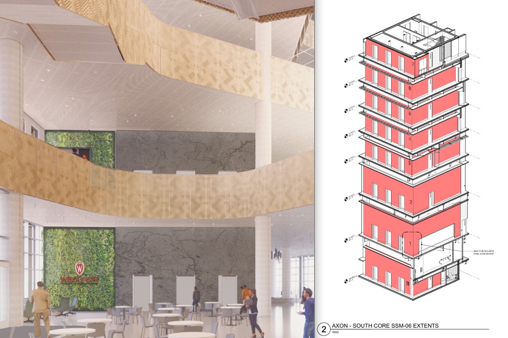 Through its Design Assist process, MR Walls worked closely with the design team to map the full Wisconsin River using custom software. Varied carving depths were used to distinguish land and water, while inlaid floor numbers were integrated directly into the panels to support wayfinding. Full size mockups and samples helped streamline approvals and ensure the design intent was clearly communicated.