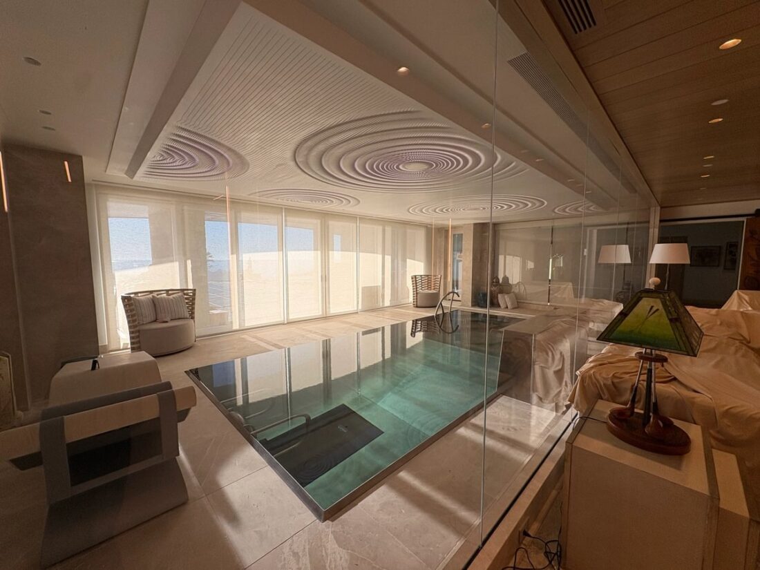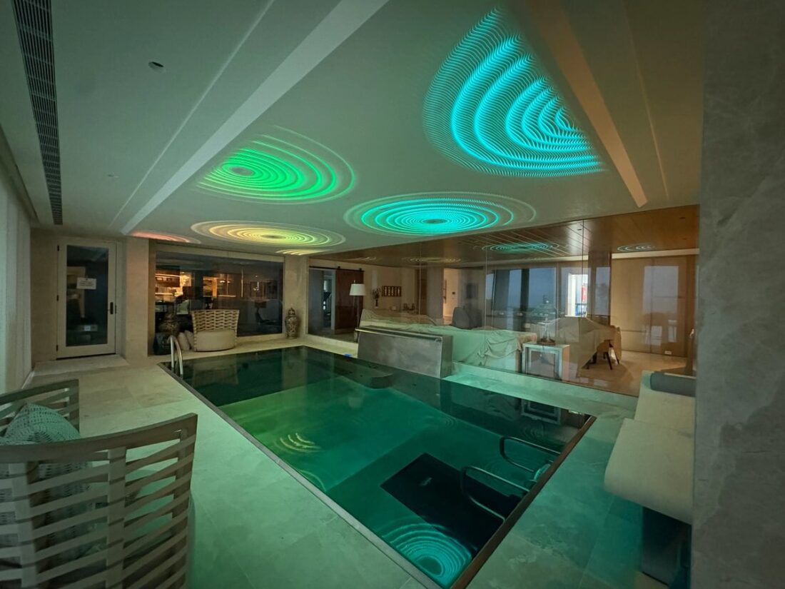 Designed above an indoor pool, this sculptural ceiling transforms Corian® into a fully integrated architectural feature. The goal was to create something immersive and dynamic, without overwhelming the environment.