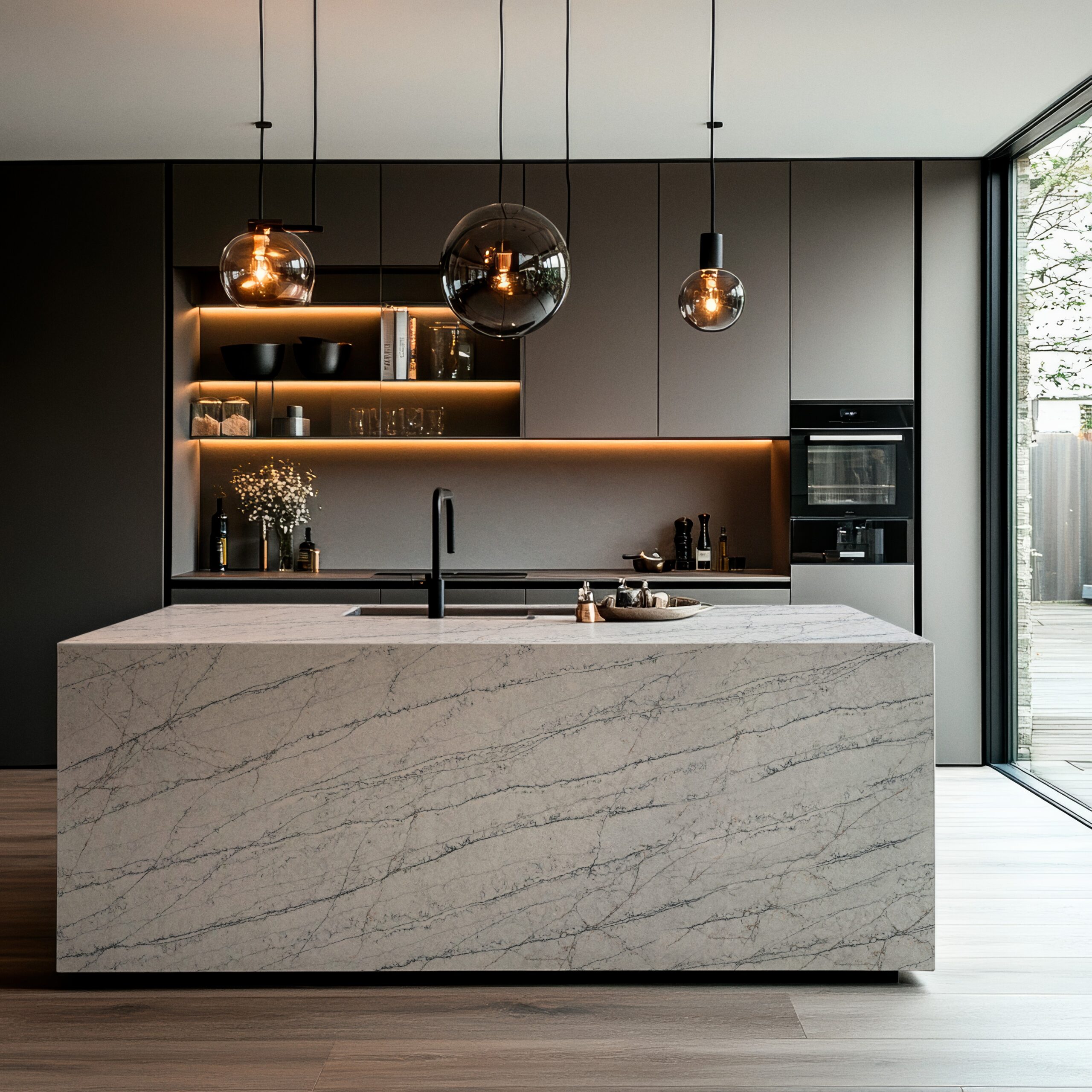 While dramatic veining still has a place, many homeowners are gravitating toward softer, more natural-looking patterns that feel organic without overwhelming the space. Subtle movement and stone-inspired designs are especially appealing in open-concept homes.