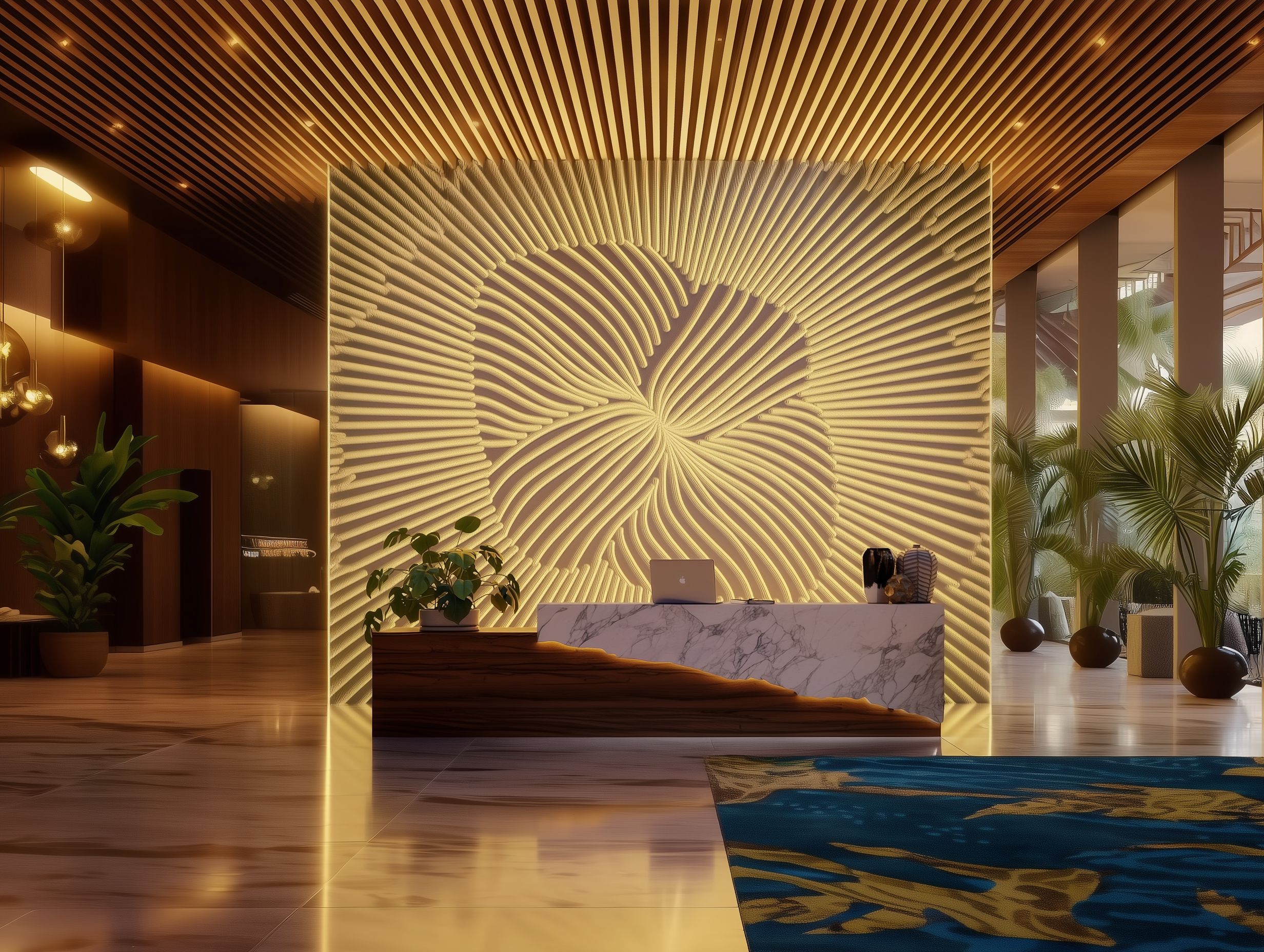 • Feature Walls: Eye-catching designs behind reception desks, in hotel lobbies, or retail interiors.