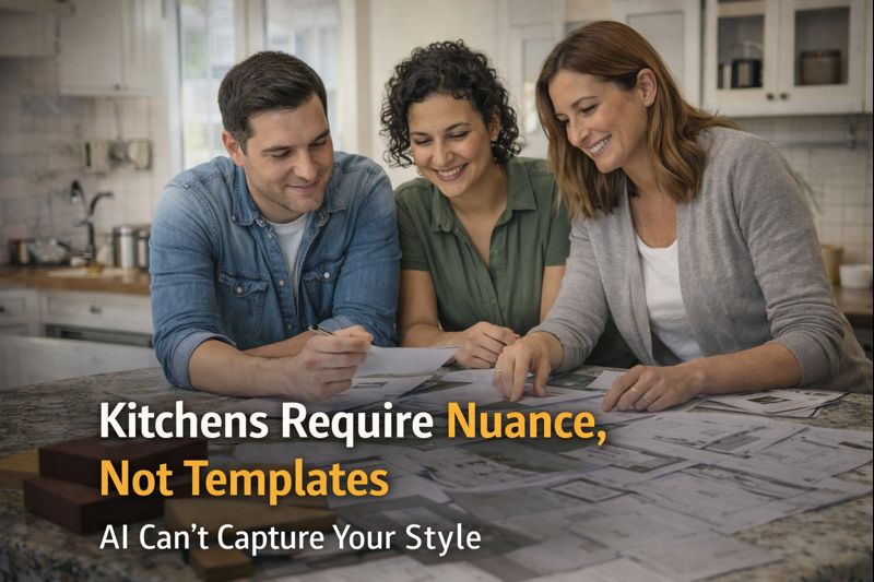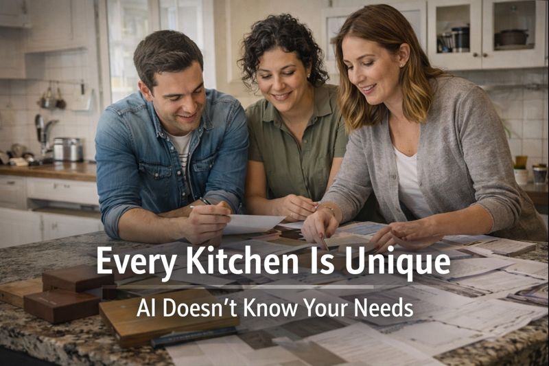 A kitchen layout is too important and too complex to rely on AI alone. While technology can inspire ideas, it lacks the experience, judgment, and problem-solving skills needed to design a kitchen that truly works.